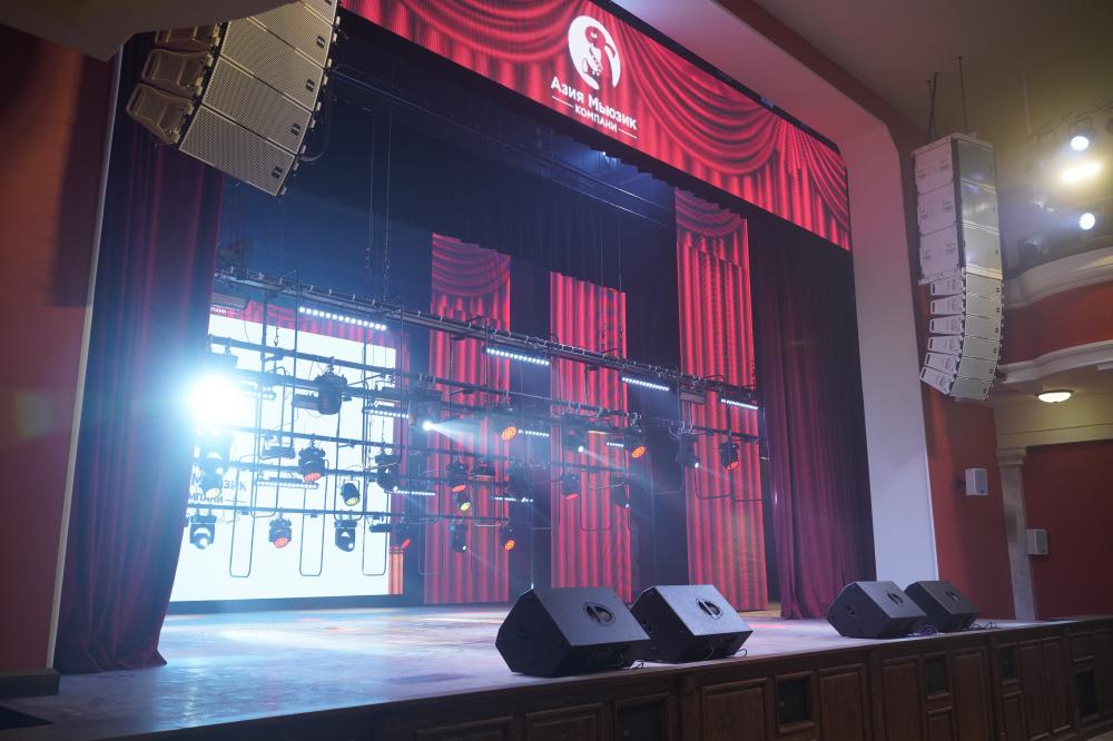 Перед специалистами "Азия Мьюзик Компани" стояла непростая задача: провести технологическое оснащение актового зала самым современным оборудованием, при этом соблюдая концепцию исторического здания.